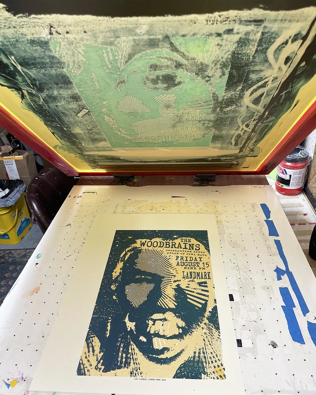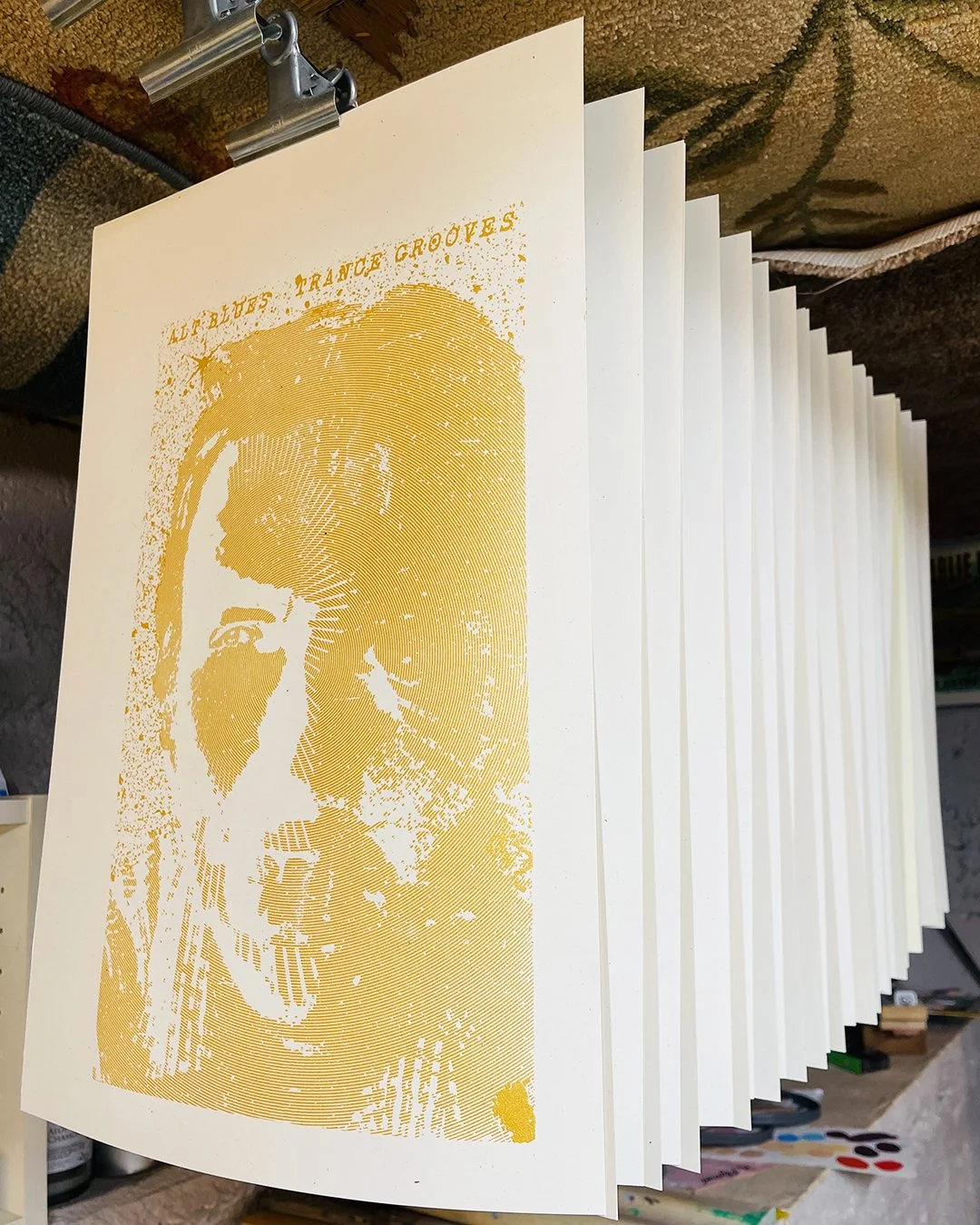 Initialed/numbered edition of 20. About eight more printed on the backs of old test-prints hung up around the venue. Measures 11x17” and is printed on Madero Beach Speckletone by French Paper.